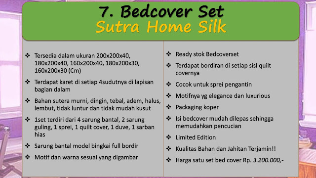 Selamat datang di Piccaso Bedding, Kami yaitu perusahaan konveksi yang berada di Surabaya, menghasilkan Sprei, Bed Cover serta Quilt Cover untuk kamar tidur, hotel serta rumah sakit. Dalam peluang ini, kami dengan bangga mendatangkan bedcover kwalitas paling baik, terlengkap dengan harga termurah. Salah nya ialah bedcover Belladona yang tengah naik daun dengan kata lain digemari serta jadi incaran banyak keluarga. Kenapa? Lantaran dari sisi kwalitas, bedcover Belladona memanglah terbuat berbahan pilihan berkwalitas yg tidak panas, tetapi harga tetaplah terjangkau untuk anda yang menginginkan belanja cerdas, jeli serta irit. Diluar itu, terdapat banyak kelebihan bedcover Belladona lain yang sayang bila anda terlewat demikian saja, diantaranya : • Bahan kain 100% katun CVC. • Kain halus serta lembut tak berpasir/berbulu. • Kualitas kain & dakron semuanya product BELLADONA lebih stabil serta termonitor lantaran memakai product dalam negeri. • Bedcover diolah deng...